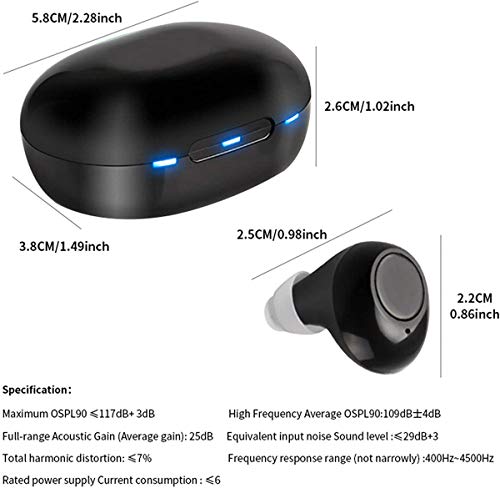 Specification: Gehoorgeluidversterkers Aid Pair in De Oor Oplaadbare Doos Bluetooth-Headsetsporten Voor Doofheid,Black