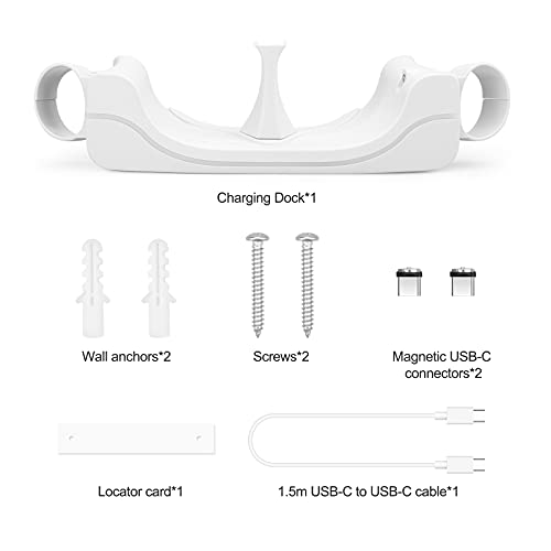 【Met indicatielampje】 Vakdon Charge Stand met opladen ademlicht, het ademlicht zal branden tijdens het opladen. Pakket bevat: laadstation*1, USB-kabel*1, magnetische USB-C-connectoren*2, wandankers*2, schroeven*2.