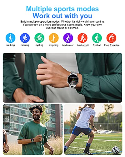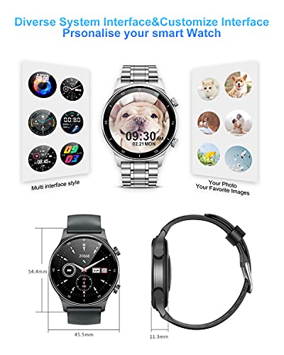 【1,32 inch HD Full Touch & 2 horlogebandjes】 360 x 360 HD-kleuren-full-touchscreen, voor een betere visuele ervaring. Naast het standaardontwerp kun je de gebruikersinterface ook zelf aanpassen. 5 helderheidsniveaus om aan de eisen van je visuele omgeving te voldoen. Wordt geleverd met siliconen sportarmband + roestvrijstalen armband voor verschillende situaties.