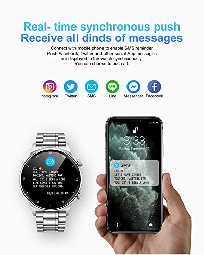 【Oproepen en berichten op de pols weergeven】 Met deze smartwatch mis je tijdens vergaderingen of tijdens de training geen belangrijke oproepen en berichten. Als er een oproep wordt ontvangen, kun je de oproep met je horloge aannemen of opleggen, en je kunt met je horloge ook zonder een simkaart bellen. Het intelligente horloge kan ook oproepen en sms van Facebook, Twitter, WhatsApp, KakaoTalk, Wechat, QQ, Weibo enz. ontvangen.