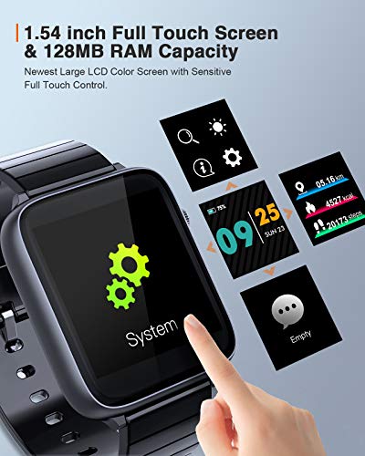 Specification: SmartWatch 1.54, fitnesspolshorloge met hartslagmeter, fitnesstracker IP68, activiteitenmonitor, sporthorloge…