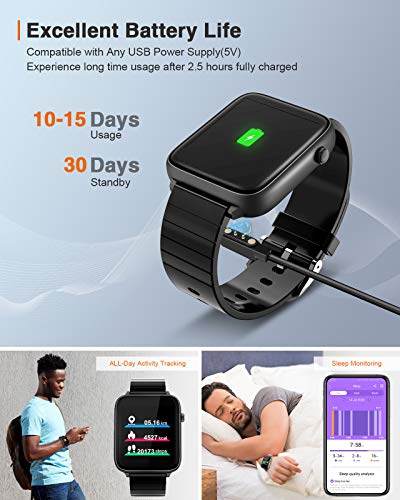 【Lange batterijduur】 Uitgerust met een grote batterijcapaciteit van 260 mAh en een geavanceerde chipset die het energiebeheer kan optimaliseren, gaat deze smartwatch 7 tot 15 dagen mee. In de energiebesparende modus is dit 20 dagen. Het is 50 dagen in de standby-modus. Met de meer geavanceerde Bluetooth 5.0-technologie hoef je je geen zorgen te maken over verbindingsproblemen. Het biedt andere handige functies zoals muziekbediening, slimme wekker, ontspanningsmodus, enz.