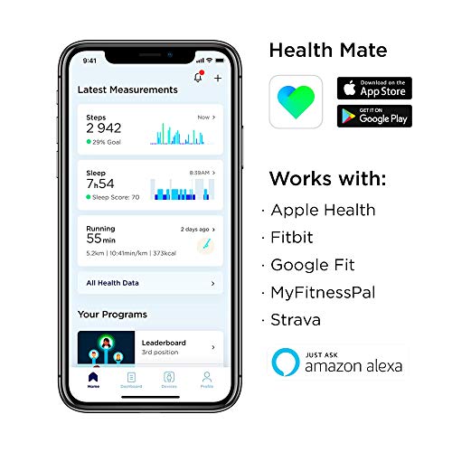 AUTOMATISCHE SYNCHRONISATIE – Bekijk je voortgang en gegevens op je smartphone met de gratis Health Mate-app (iOS en Android)