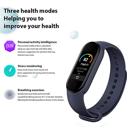 Specification: Xiaomi Mi Band 5 Smart-armband, activiteitentracker, fitnesstracker, 2,7 cm (1,1 inch), dynamisch kleurendisplay, zwart…