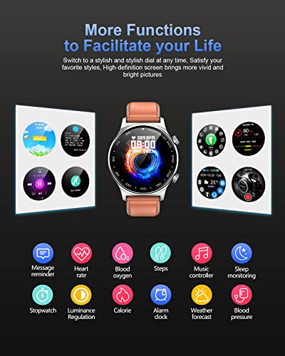 【1,32 inch HD Full Touch & 2 horlogebandjes】 360 x 360 HD-kleuren-full-touchscreen, voor een betere visuele ervaring. Naast het standaardontwerp kun je de gebruikersinterface ook zelf aanpassen. 5 helderheidsniveaus om aan de eisen van je visuele omgeving te voldoen. Wordt geleverd met siliconen sportarmband + roestvrijstalen armband voor verschillende situaties.