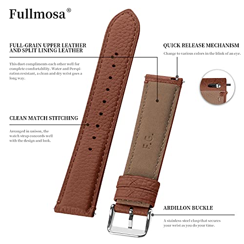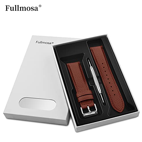 Specification: Fullmosa 9 kleuren gepolijste horlogeband 21mm, leren armband Emmas met Vierkante gesp voor dames en heren, 21mm Bruin…